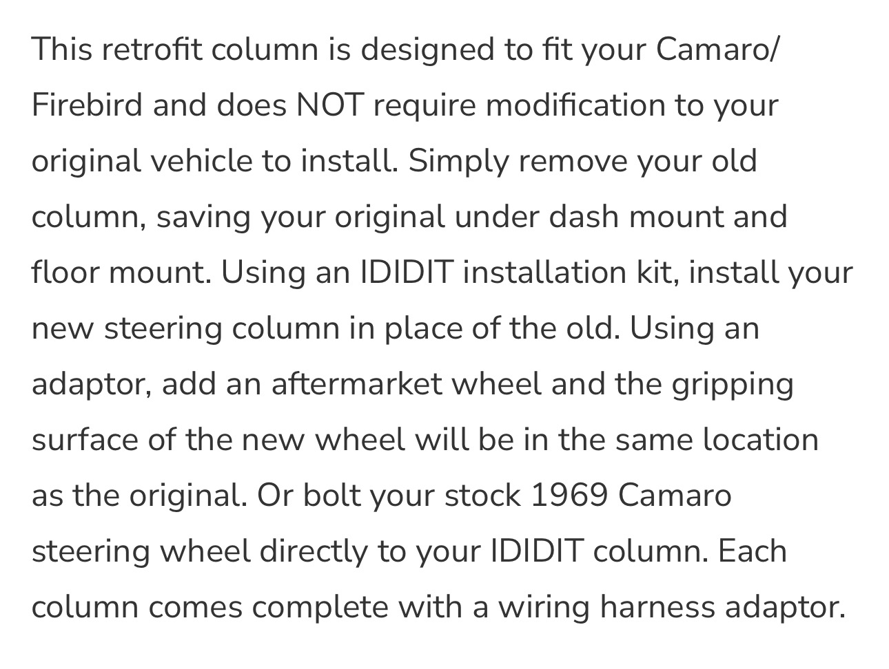 1969 Camaro IDIDIT Steering Column-tilt-floor Shift-paintable-with Keyed Ignition