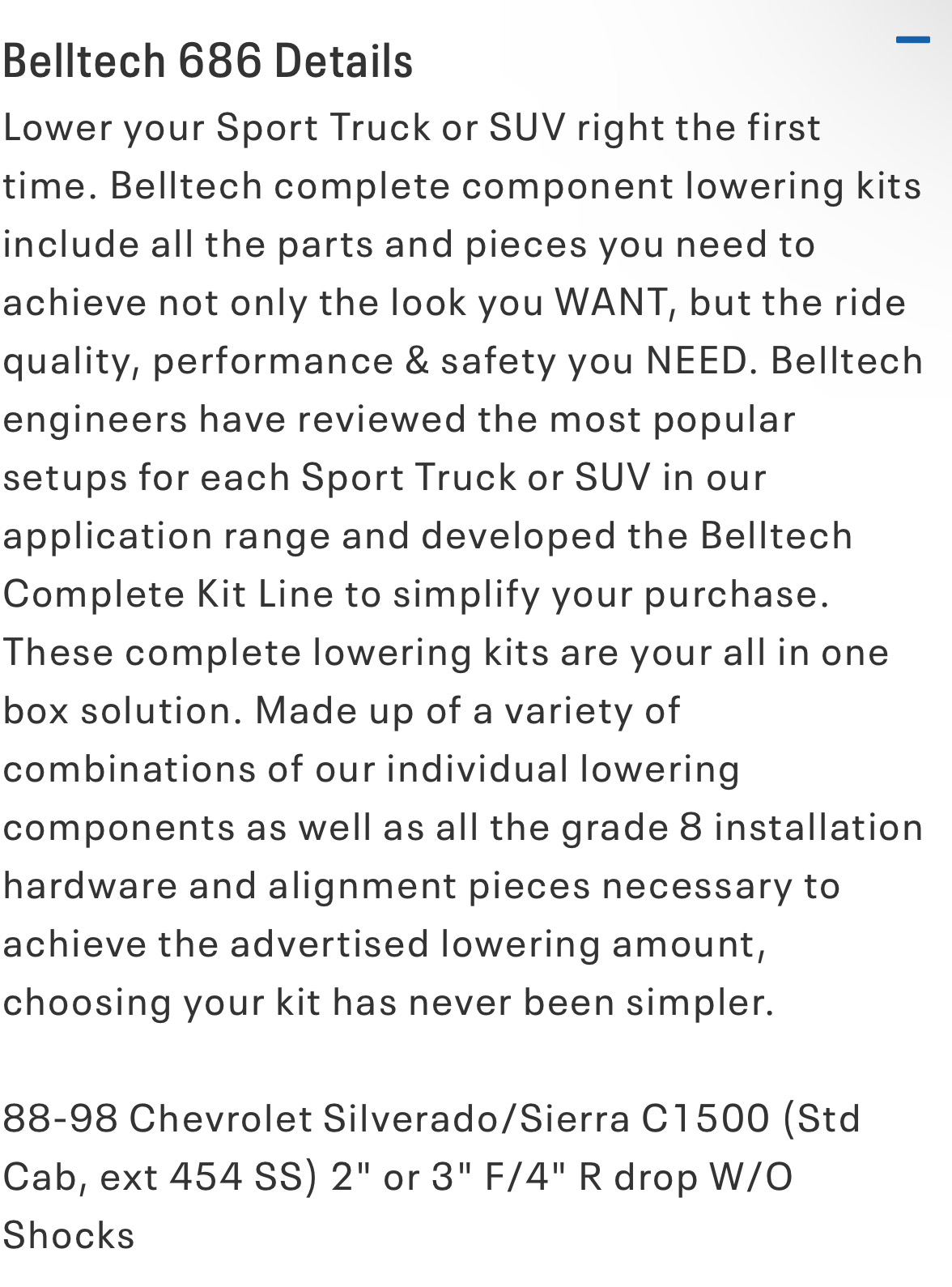 Belltech 3”/4” Lowering Suspension Kit For 1988-98 Chevy/GMC 1/2 ton truck