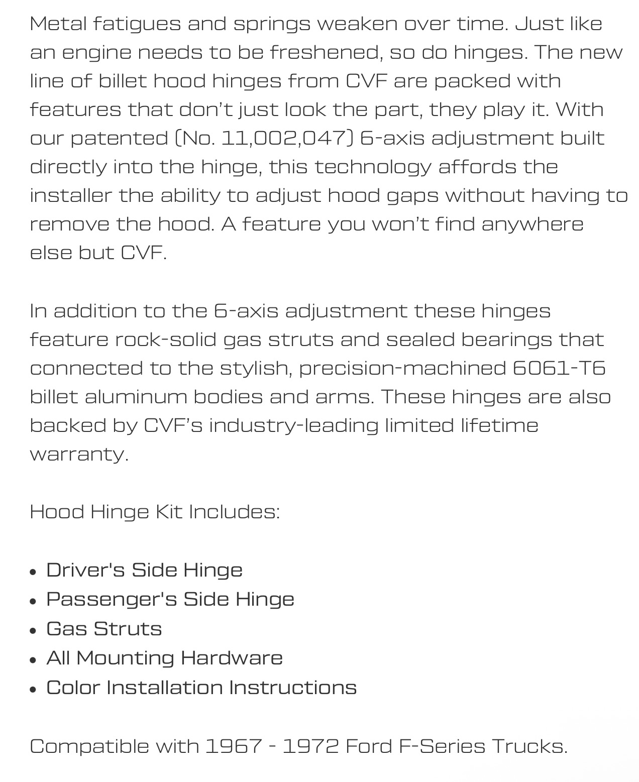 CVF Racing 1967-72 F100 Polished Hood Hinges