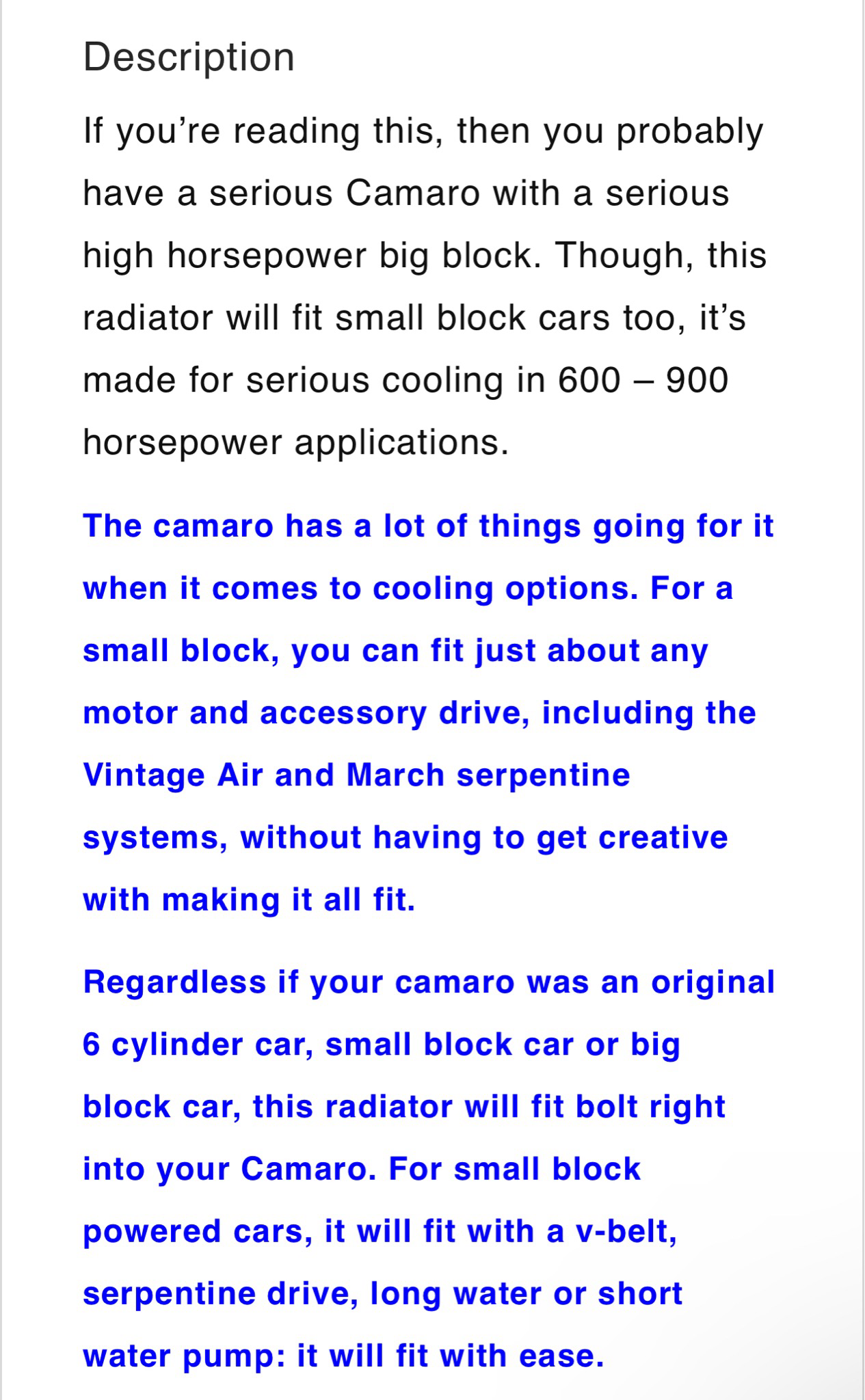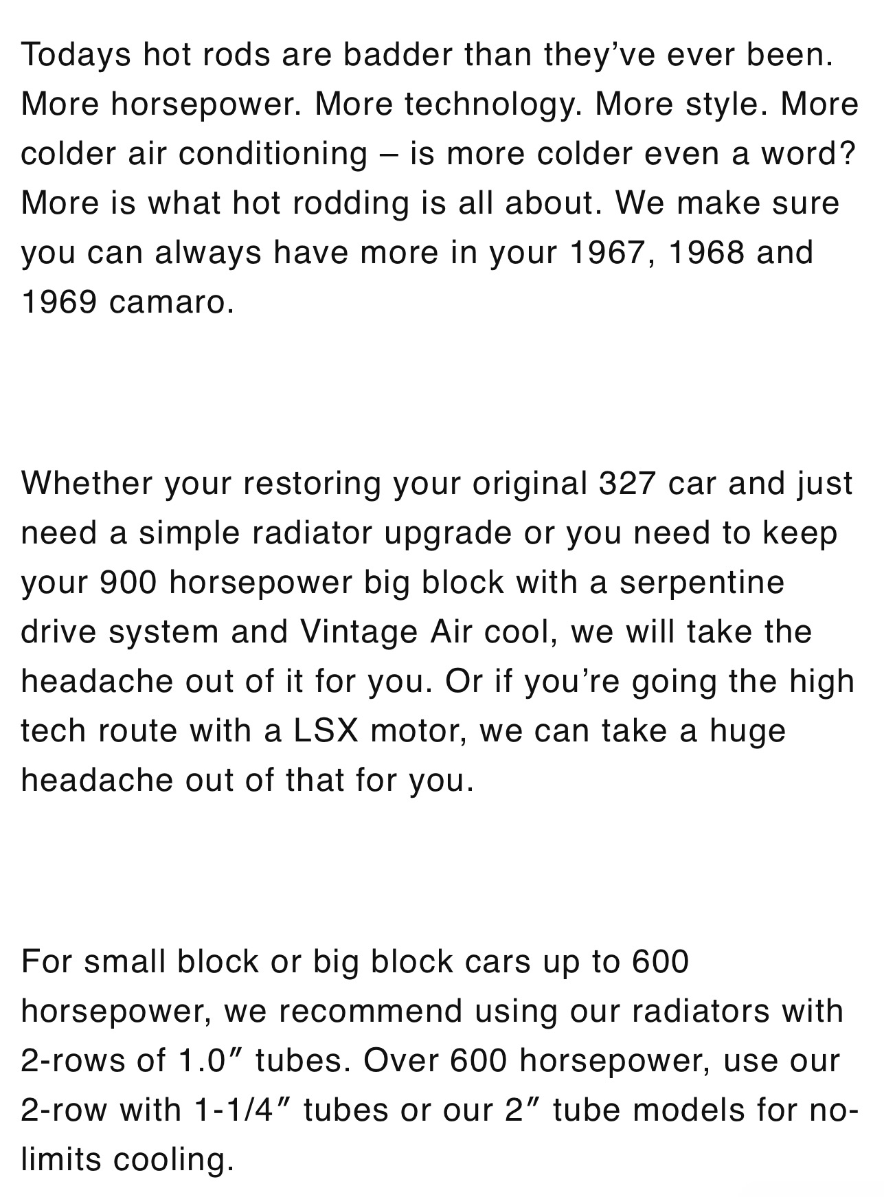 Entropy Radiator for 1967-69 Camaro/Nova-Supports 900 Horsepower