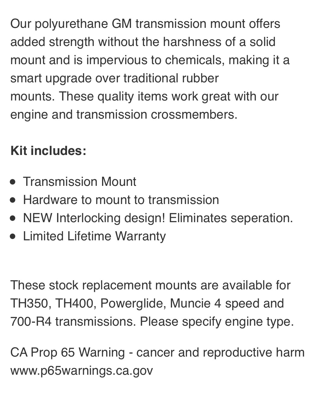 GM Transmission Poly Urathane Mount-Chrome