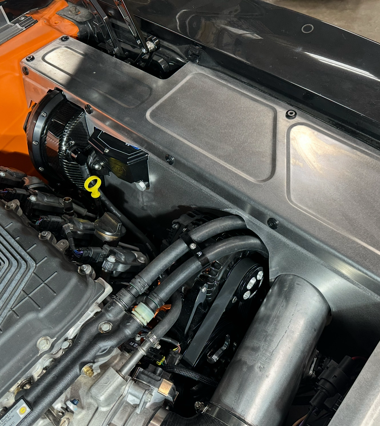 Some of the pictures show how the customers modified the inner fender drop down panel to fit around their brake booster and master cylinder. Whether you are running a vacuum booster, hydro boost, or manual brakes, it’s going to come out in the middle of the fender drop down, and this area will need to be cut to fit. If you have radiator cap interference or any other issues, we will work with you to make panels that fit your specific needs.