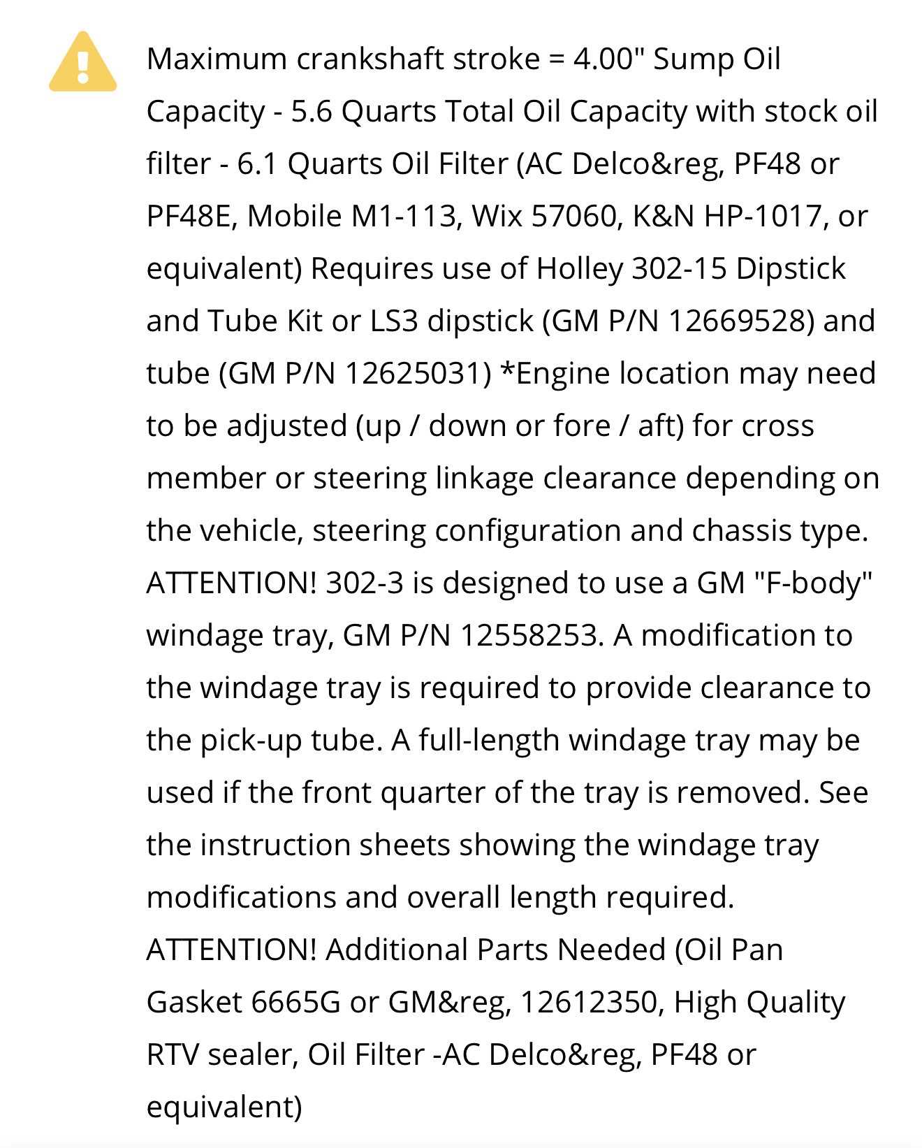 Holley GM LS Swap Oil Pan - for 408 Stroker