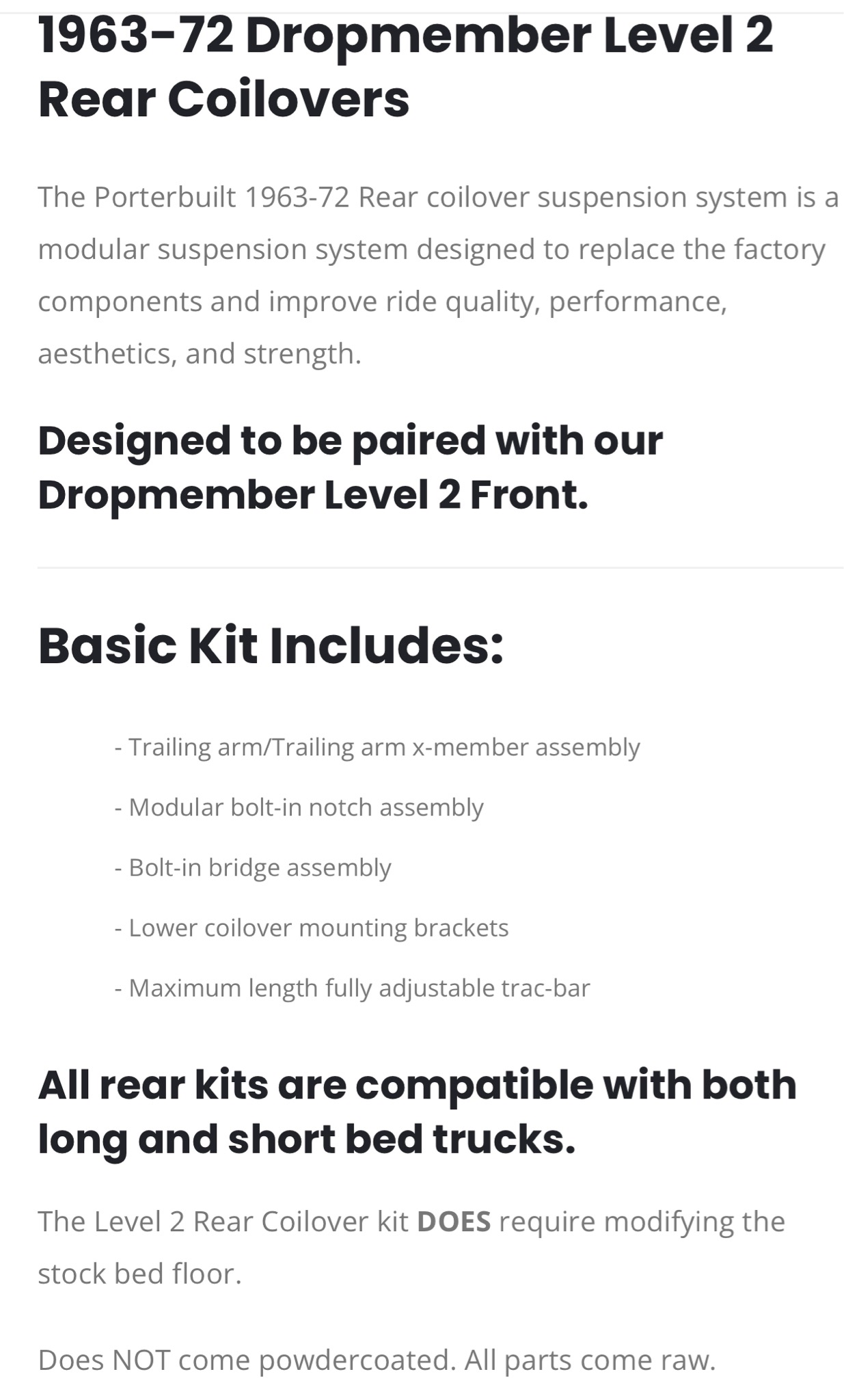 Porterbuilt 1963-72 C10 Level 2 Coil Over Dropmember