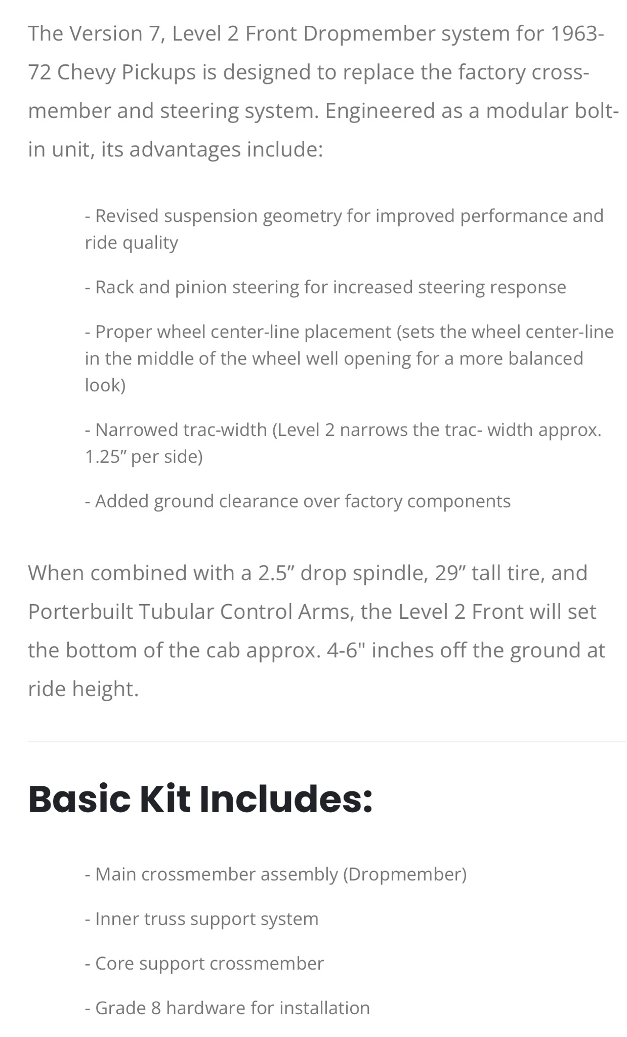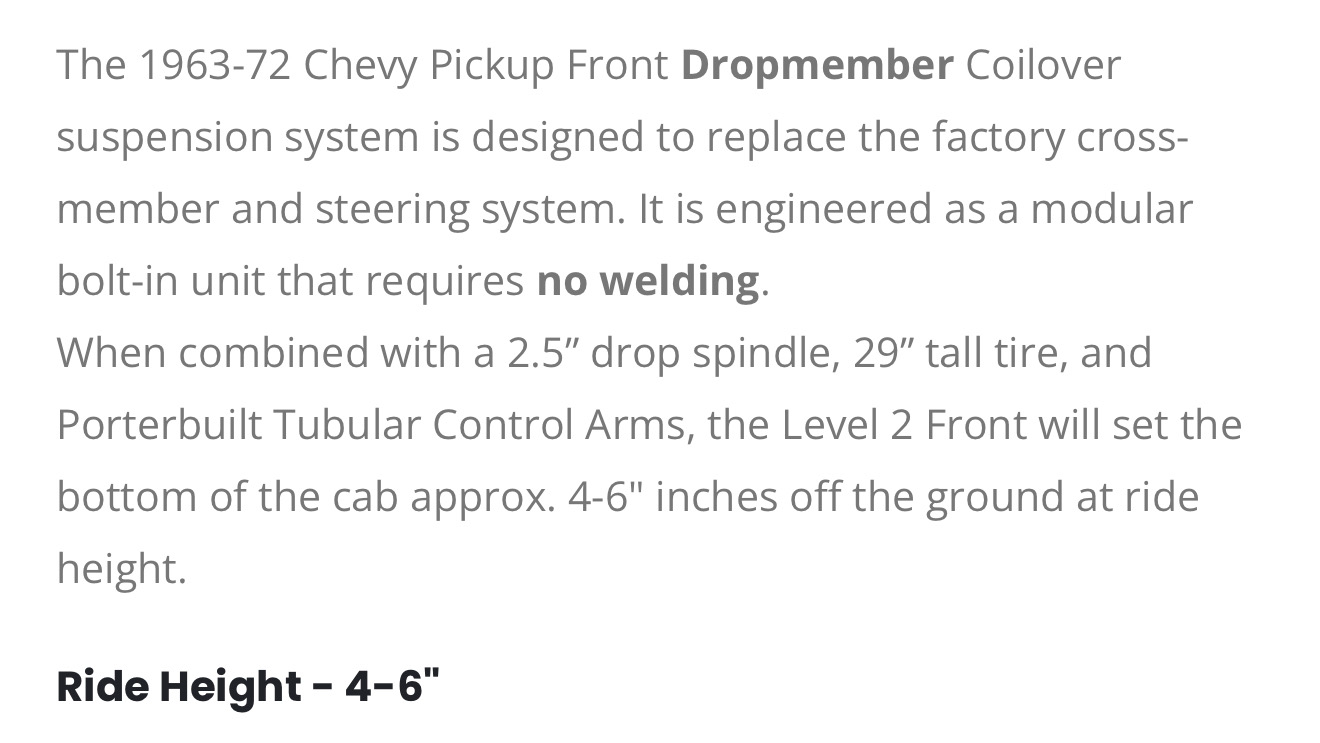 Porterbuilt 1963-87 C10 Front Level 2 Coilover Dropmember