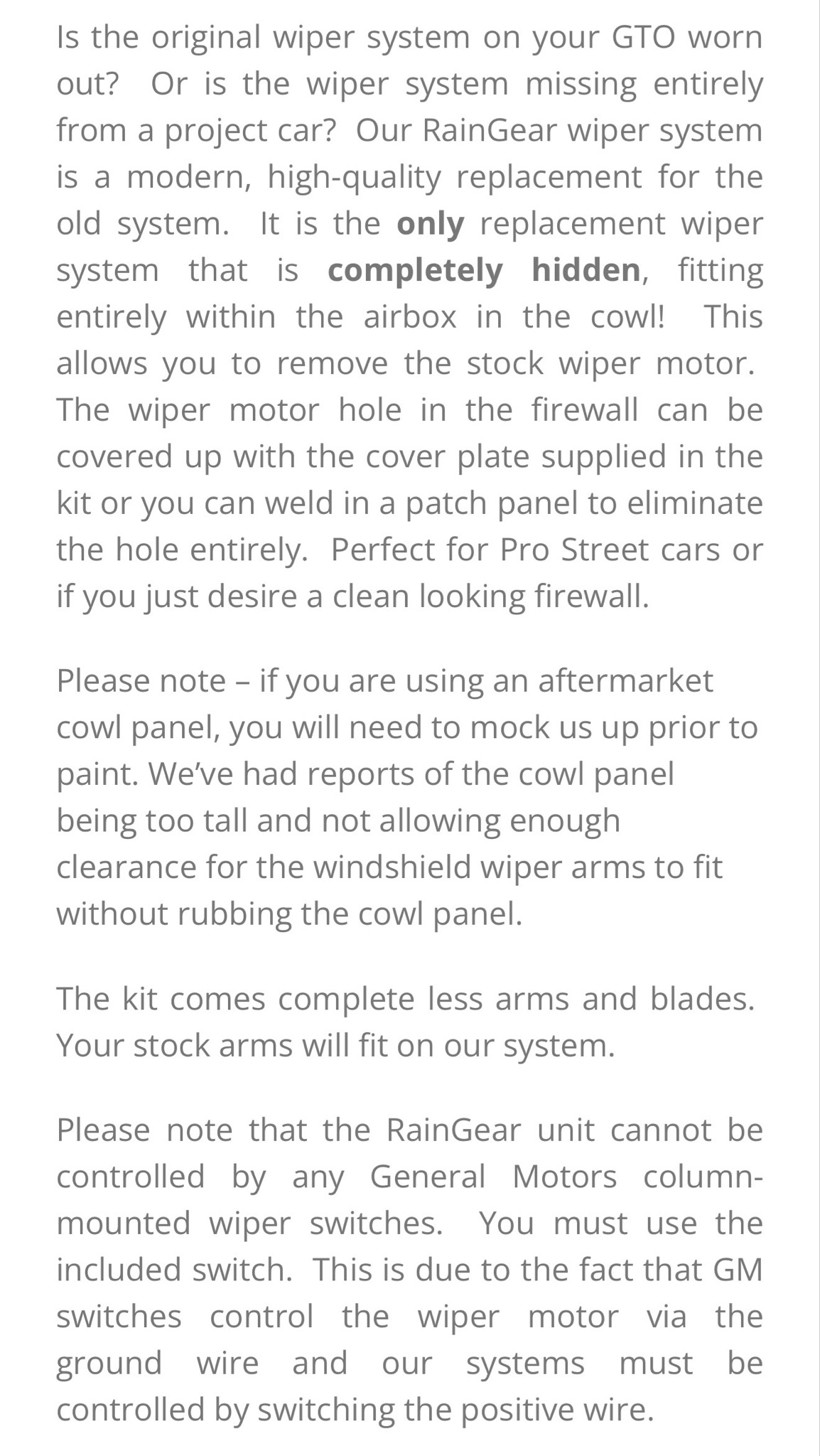 Raingear 1968-72 GTO Hidden Windshield Wiper Motor System