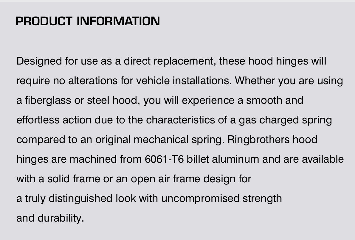 Ringbrothers 1960-66 Hood Hinges-Airframe-Natural Finish