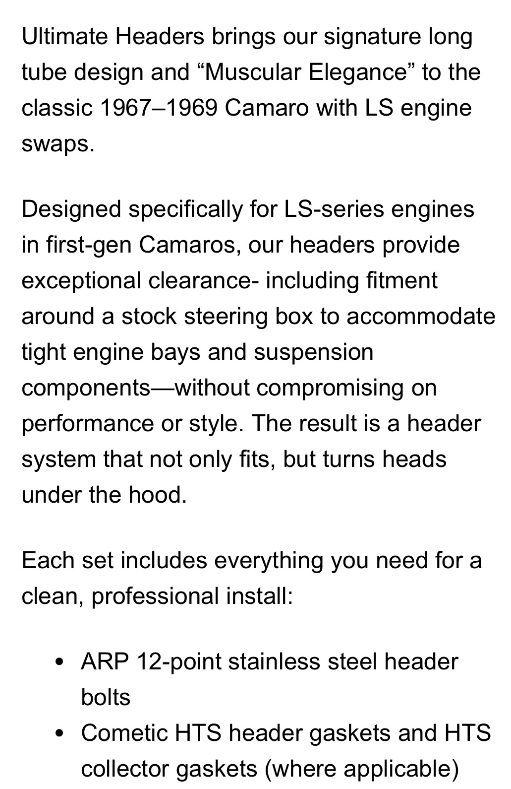 Ultimate Headers - LS Swap Headers for 1st Gen Camaro/F Body Cars - Long Tube